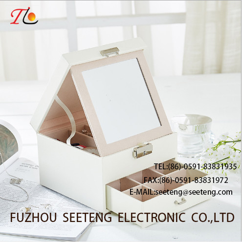 High end and elegant PU leather jewelry box for wholesale from manufacturer jewelry box with mirror box drawer